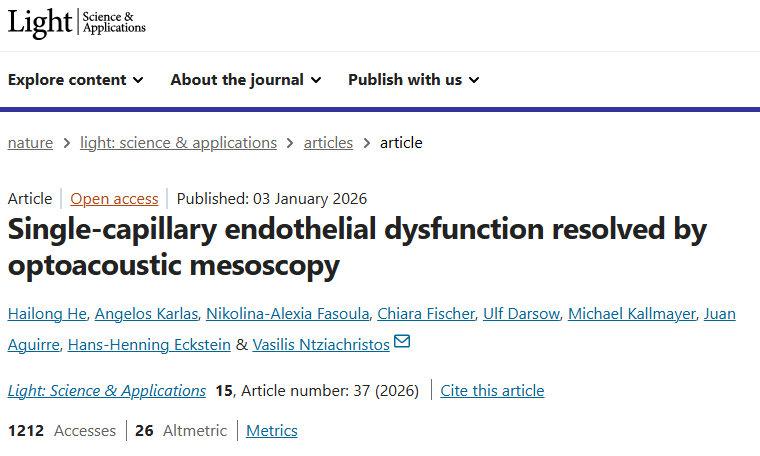 The translational potential of such optoacoustic microvascular assessment is illustrated in a recent Helmholtz Munich press release, which describes how non‑invasive optoacoustic imaging can detect early signs of heart disease through the skin by resolving microvascular and endothelial dysfunction at high resolution (link). Together, these efforts outline a coherent pathway from optical computation and OPTOMICS‑driven methodology to future precision diagnostics in cardiometabolic disease.